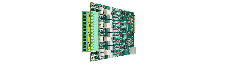 A modular analog input card for use with Ivie MAP series devices. Each Quad In provides 4 channels of balanced